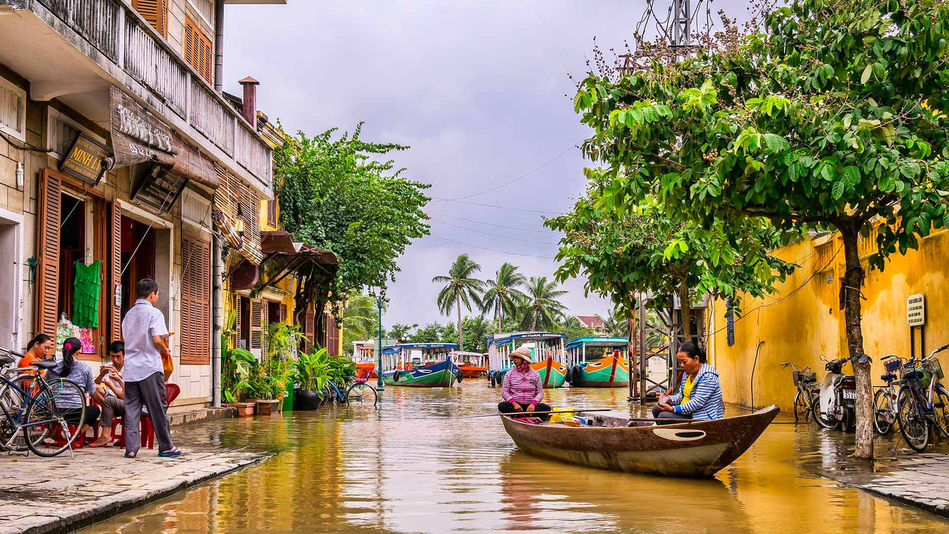 Journée dans la région de Hội An au sud de Da Nang. Balade en bateau bambou sur la rivière Cua Dai. Visite de Hội An, qui fût un comptoir commercial où s’installèrent au 17e siècle plusieurs compagnies étrangères venues de Chine, de Hollande, d’Angleterre, du Japon, du Portugal, de France et d’Indonésie. La ville fût délaissée au profit de Da Nang, mais a préservé son architecture ancienne typique. Traversée du pont couvert japonais richement décoré et promenade sur la rue principale nommée Trần Phú. Dégustation de spécialité, le fameux pudding de sésame, et dîner dans un restaurant local. Balade libre dans la vieille ville de Hoî An et retour après le souper à Da Nang. PD/D