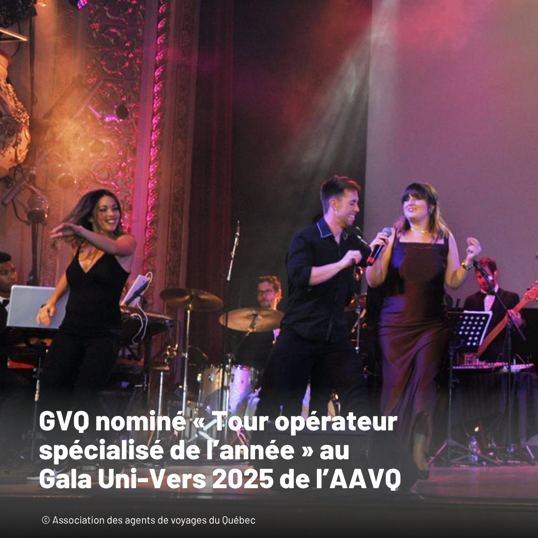Cette semaine nous avons reçu une reconnaissance par nos pairs de l’industrie en étant mis en nomination dans la catégorie « Tour opérateur spécialisé de l’année » dans le cadre du Gala Uni-Vers 2025 de l’Association des Agents de Voyages du Québec (AAVQ) qui se tiendra le 5 novembre prochain.